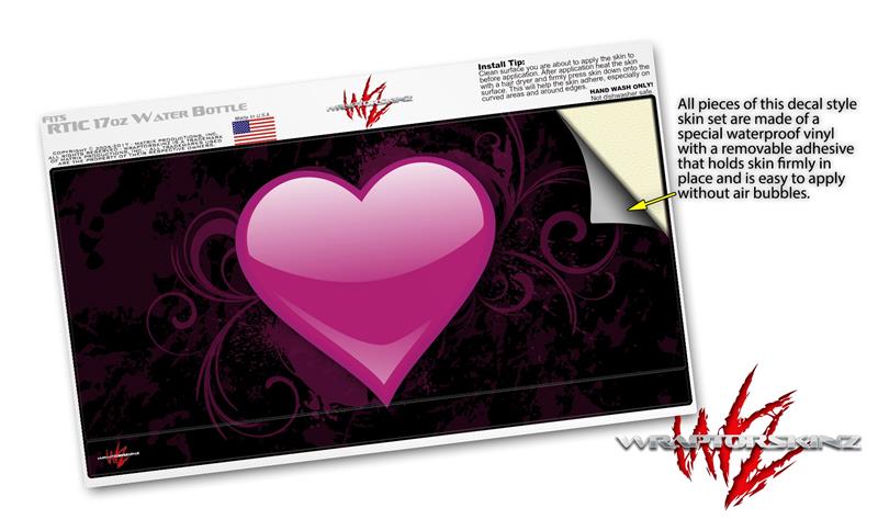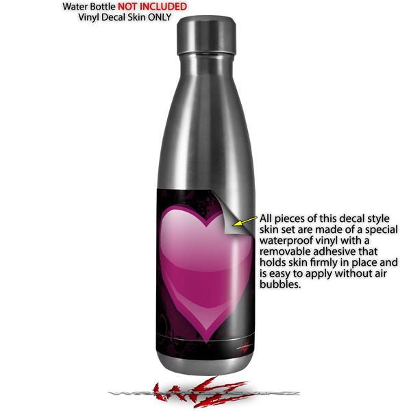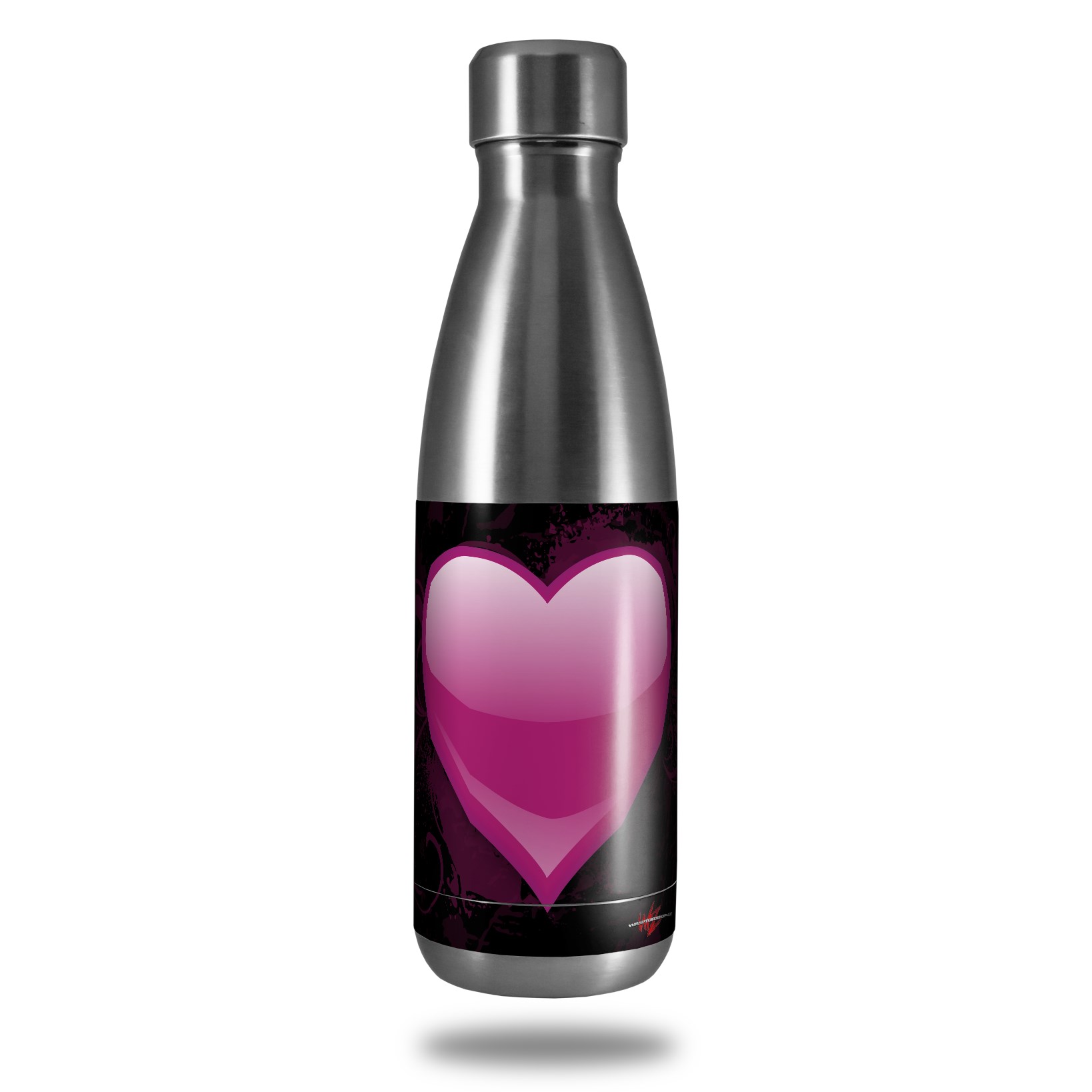 Skin Decal Wrap for RTIC Water Bottle 17oz Glass Heart Grunge Hot Pink (BOTTLE NOT INCLUDED)
