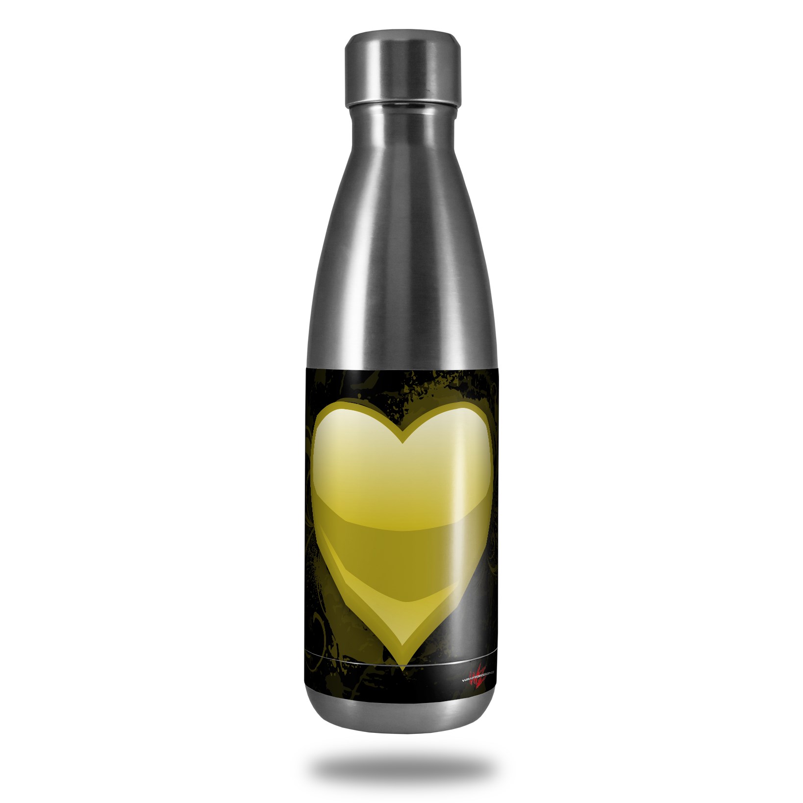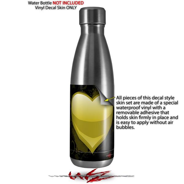 Skin Decal Wrap for RTIC Water Bottle 17oz Glass Heart Grunge Yellow (BOTTLE NOT INCLUDED)