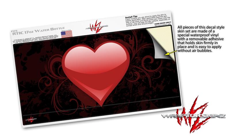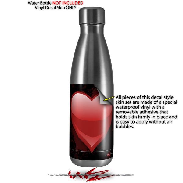 Skin Decal Wrap for RTIC Water Bottle 17oz Glass Heart Grunge Red (BOTTLE NOT INCLUDED)
