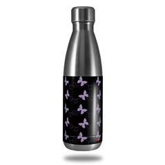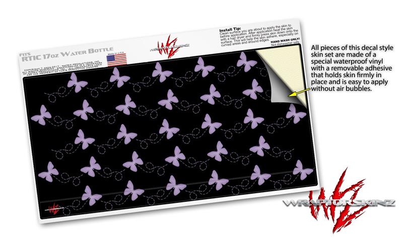 Skin Decal Wrap for RTIC Water Bottle 17oz Pastel Butterflies Purple on Black (BOTTLE NOT INCLUDED)