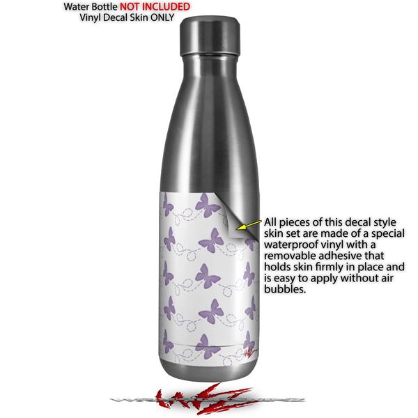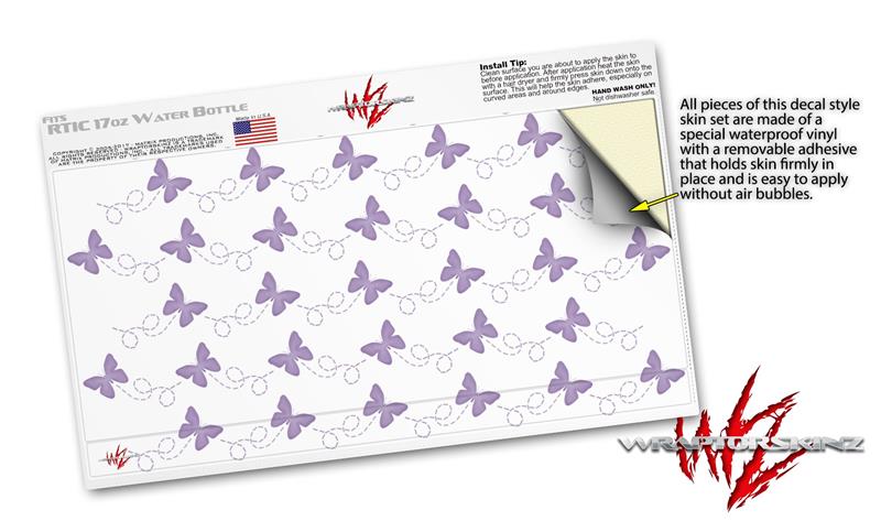 Skin Decal Wrap for RTIC Water Bottle 17oz Pastel Butterflies Purple on White (BOTTLE NOT INCLUDED)