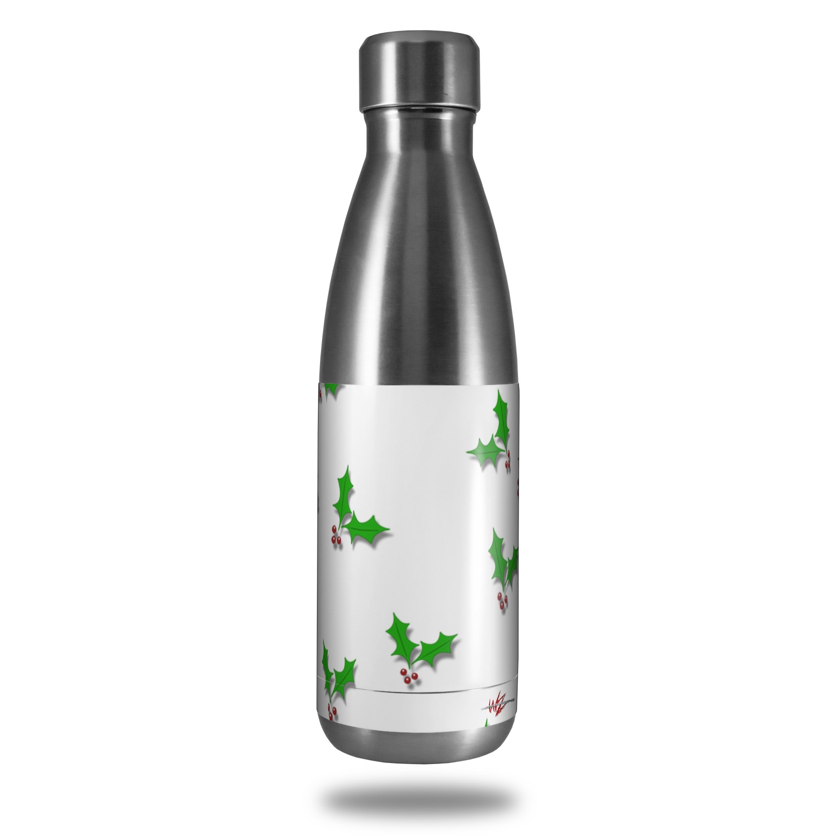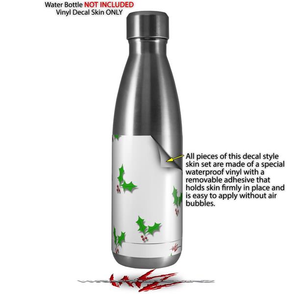 Skin Decal Wrap for RTIC Water Bottle 17oz Christmas Holly Leaves on White (BOTTLE NOT INCLUDED)