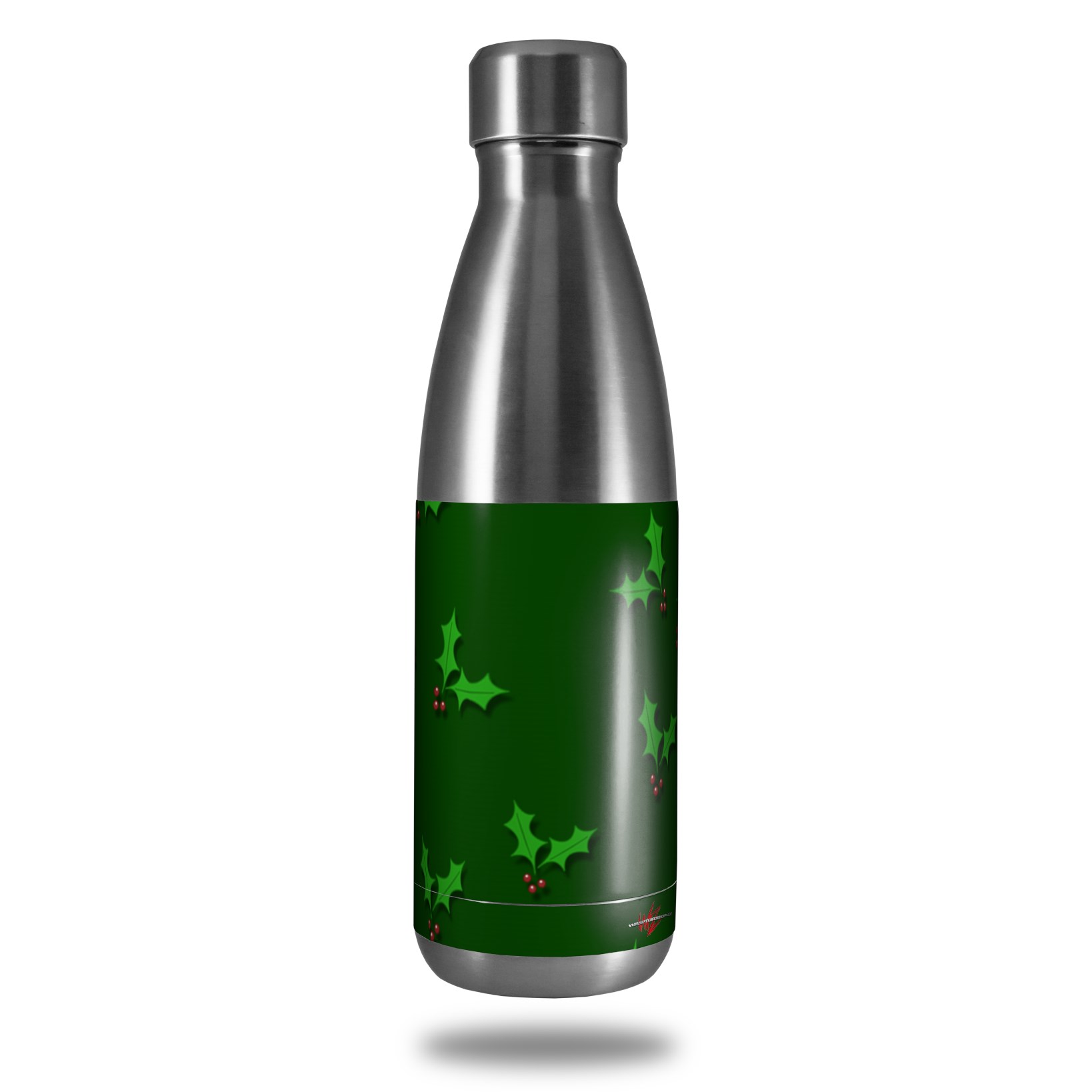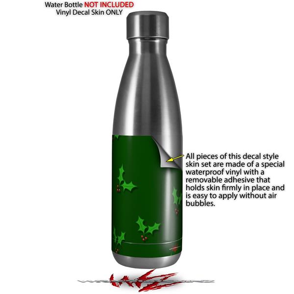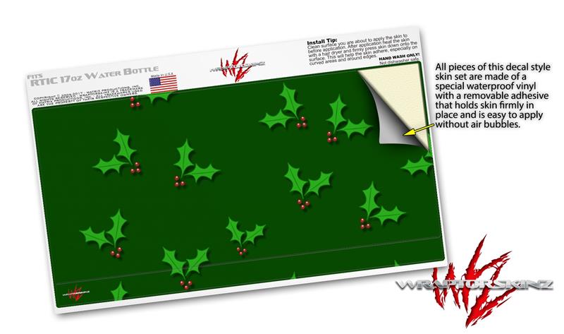 Skin Decal Wrap for RTIC Water Bottle 17oz Christmas Holly Leaves on Green (BOTTLE NOT INCLUDED)