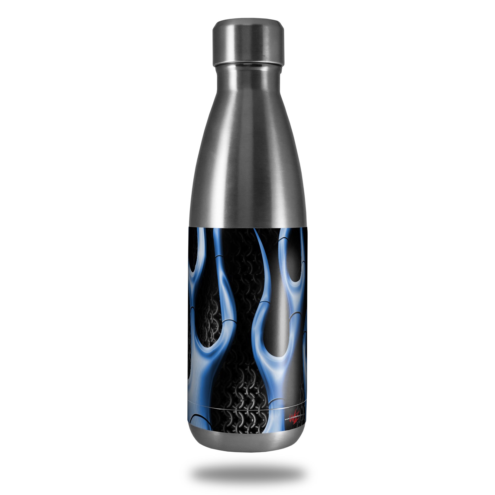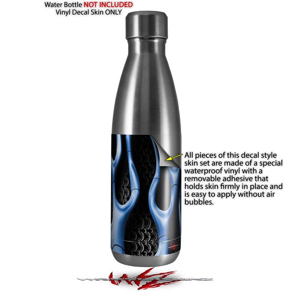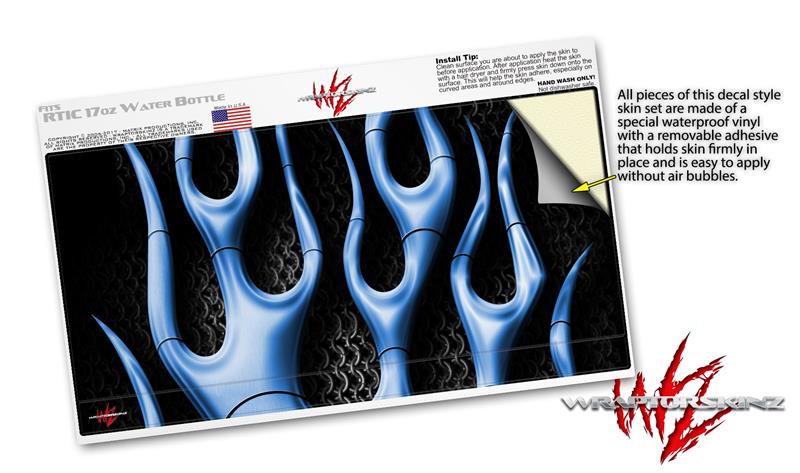 Skin Decal Wrap for RTIC Water Bottle 17oz Metal Flames Blue (BOTTLE NOT INCLUDED)