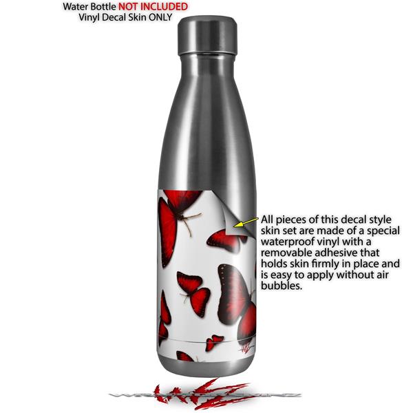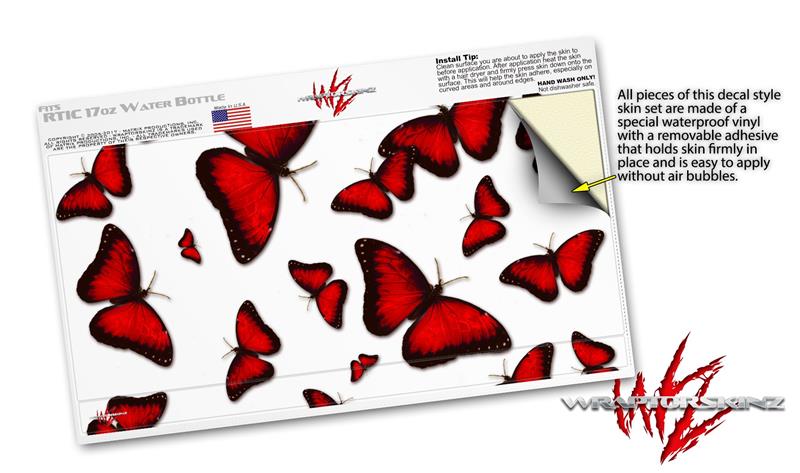 Skin Decal Wrap for RTIC Water Bottle 17oz Butterflies Red (BOTTLE NOT INCLUDED)