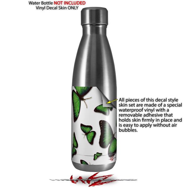 Skin Decal Wrap for RTIC Water Bottle 17oz Butterflies Green (BOTTLE NOT INCLUDED)