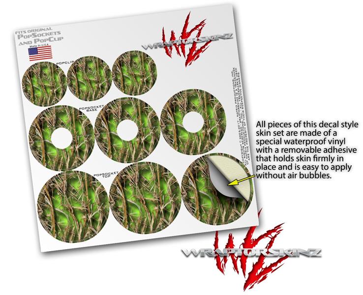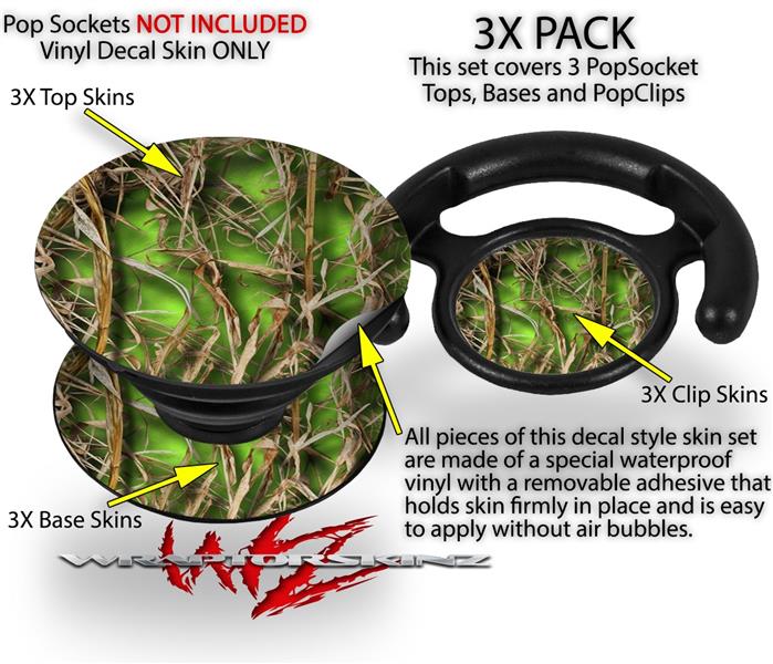 Decal Style Vinyl Skin Wrap 3 Pack for PopSockets WraptorCamo Grassy Marsh Camo Neon Green (POPSOCKET NOT INCLUDED)