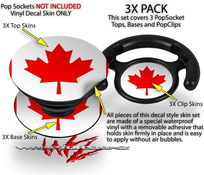Decal Style Vinyl Skin Wrap 3 Pack for PopSockets Canadian Canada Flag (POPSOCKET NOT INCLUDED)