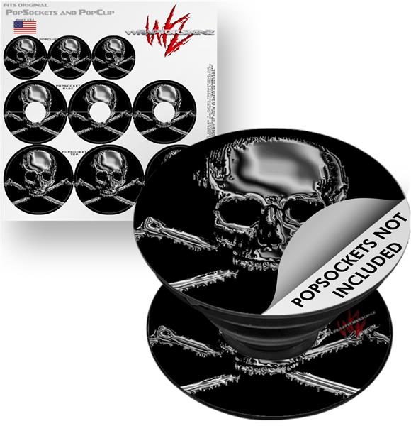 Decal Style Vinyl Skin Wrap 3 Pack for PopSockets Chrome Skull on Black (POPSOCKET NOT INCLUDED)