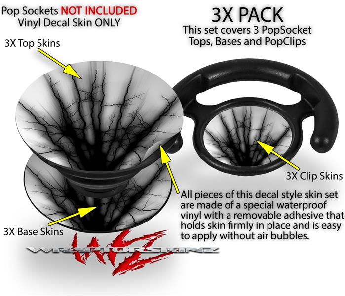 Decal Style Vinyl Skin Wrap 3 Pack for PopSockets Lightning Black (POPSOCKET NOT INCLUDED)