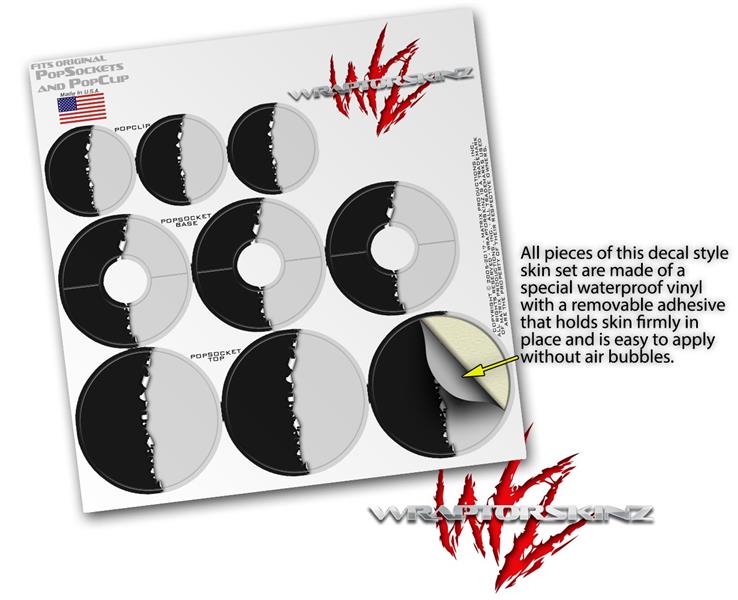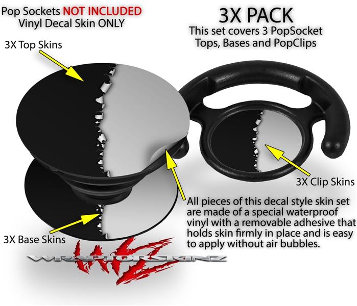 Decal Style Vinyl Skin Wrap 3 Pack for PopSockets Ripped Colors Black Gray (POPSOCKET NOT INCLUDED)