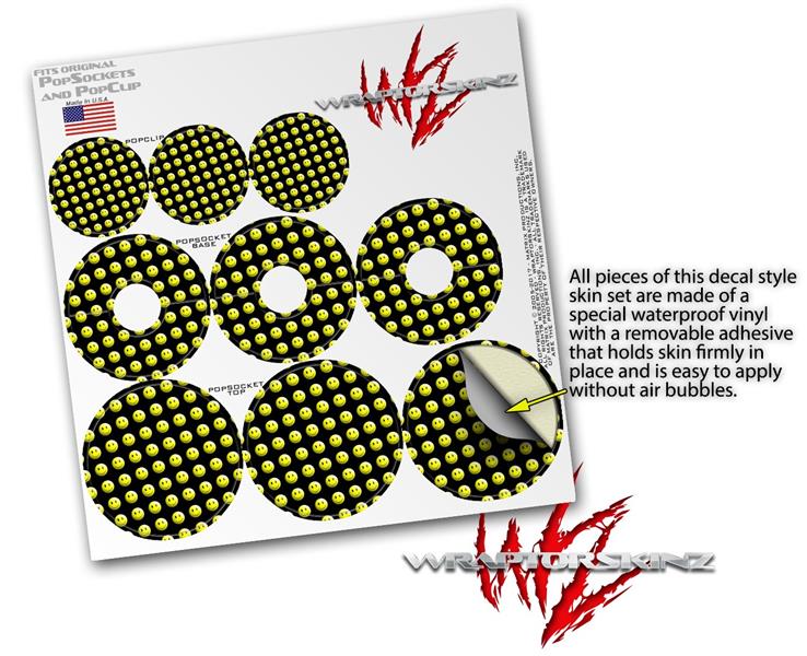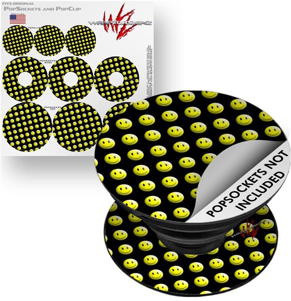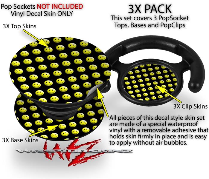 Decal Style Vinyl Skin Wrap 3 Pack for PopSockets Smileys on Black (POPSOCKET NOT INCLUDED)