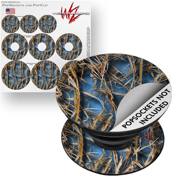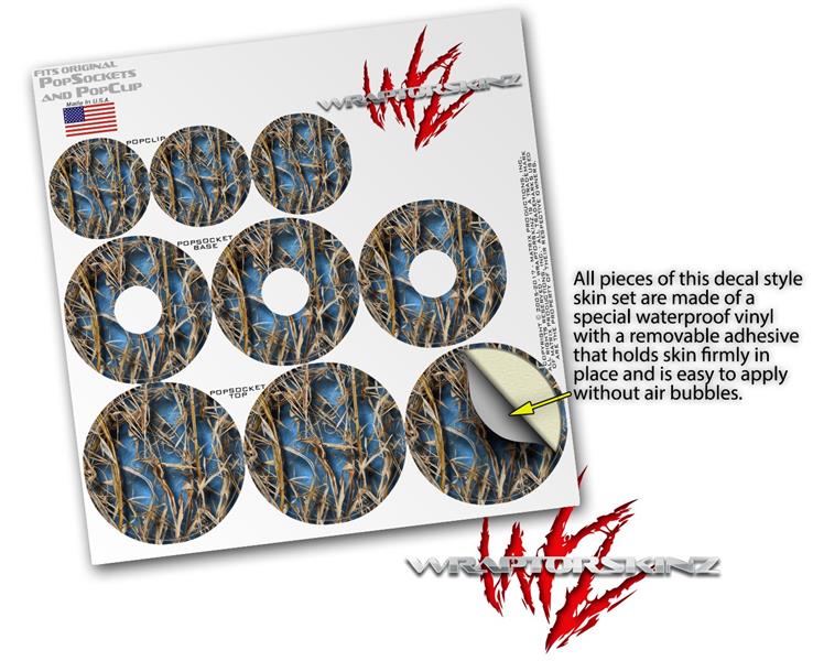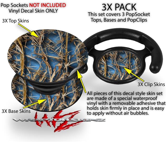 Decal Style Vinyl Skin Wrap 3 Pack for PopSockets WraptorCamo Grassy Marsh Camo Neon Blue (POPSOCKET NOT INCLUDED)