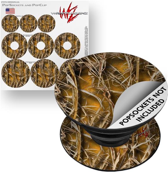 Decal Style Vinyl Skin Wrap 3 Pack for PopSockets WraptorCamo Grassy Marsh Camo Orange (POPSOCKET NOT INCLUDED)
