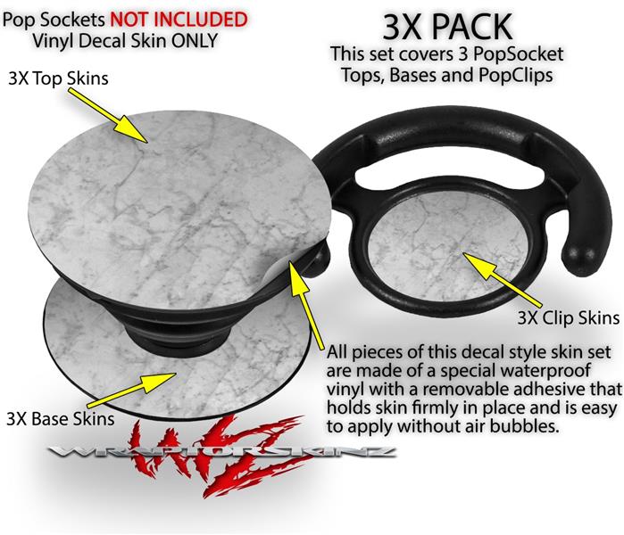 Decal Style Vinyl Skin Wrap 3 Pack for PopSockets Marble Granite 09 White Gray (POPSOCKET NOT INCLUDED)