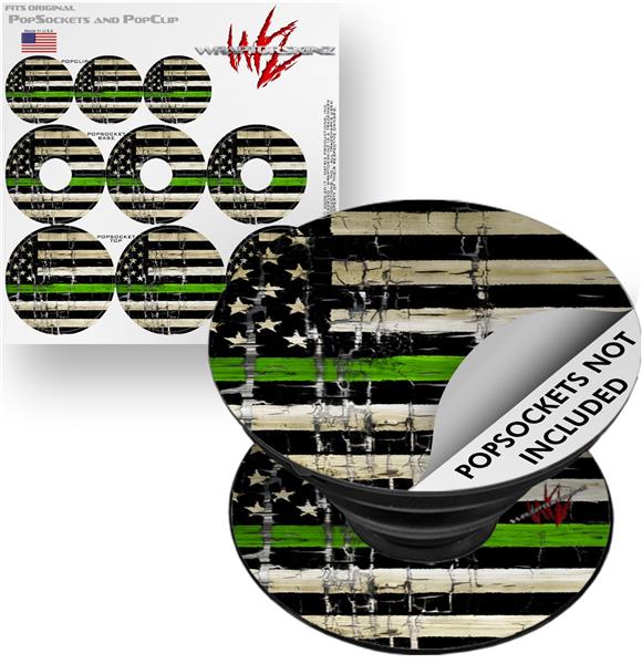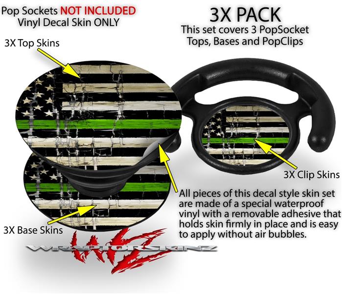 Decal Style Vinyl Skin Wrap 3 Pack for PopSockets Painted Faded and Cracked Green Line USA American Flag (POPSOCKET NOT INCLUDED)