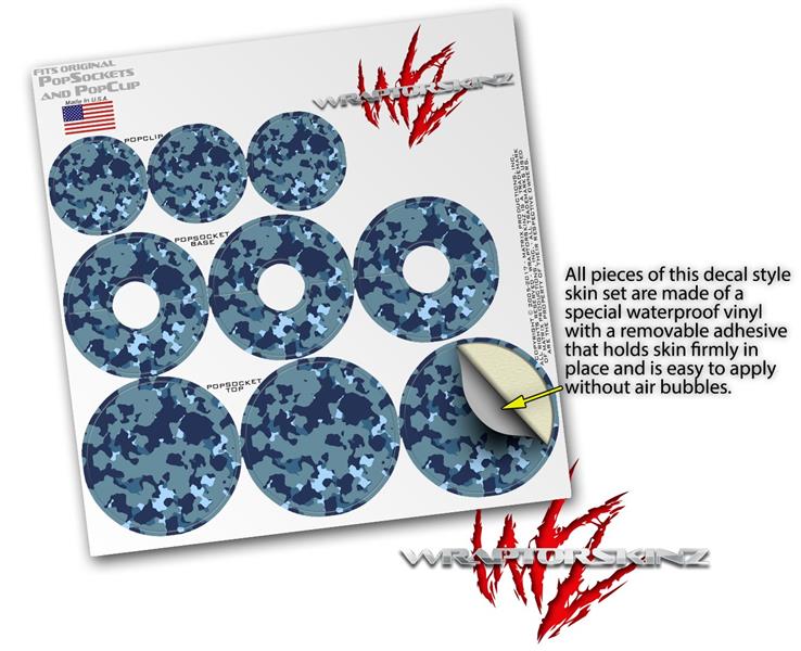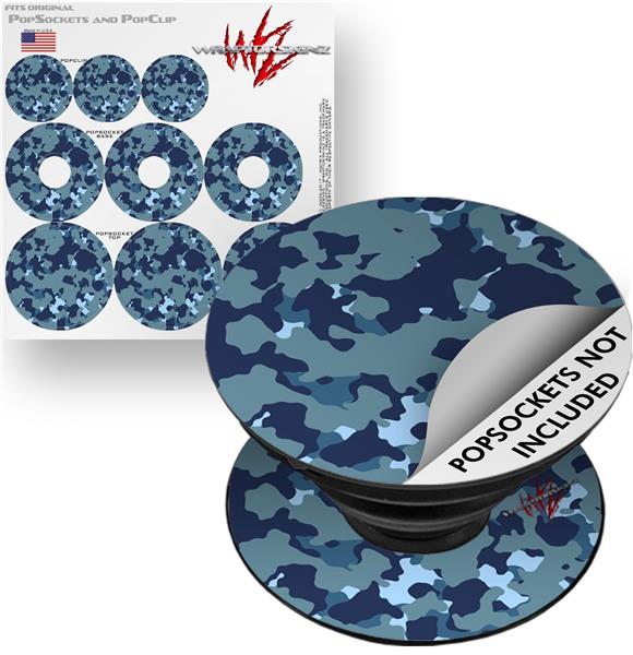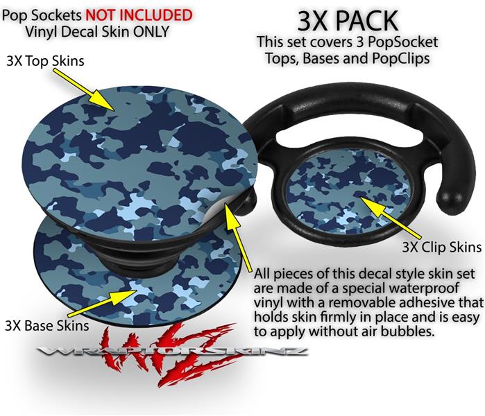 Decal Style Vinyl Skin Wrap 3 Pack for PopSockets WraptorCamo Old School Camouflage Camo Navy (POPSOCKET NOT INCLUDED)
