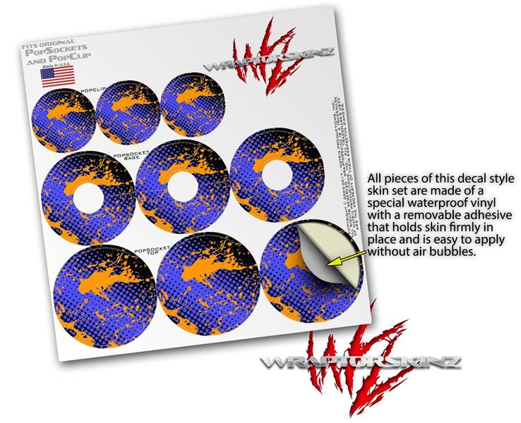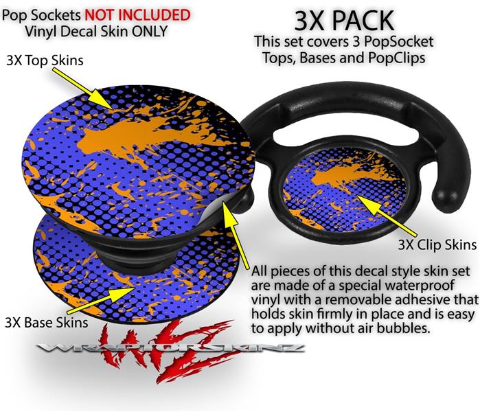 Decal Style Vinyl Skin Wrap 3 Pack for PopSockets Halftone Splatter Orange Blue (POPSOCKET NOT INCLUDED)