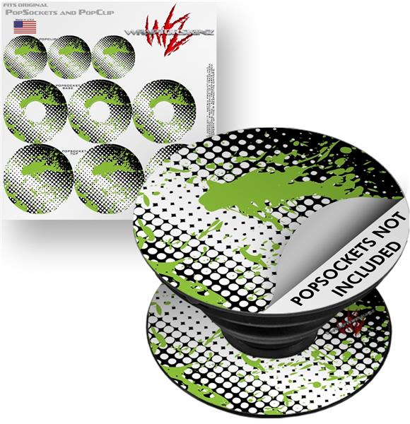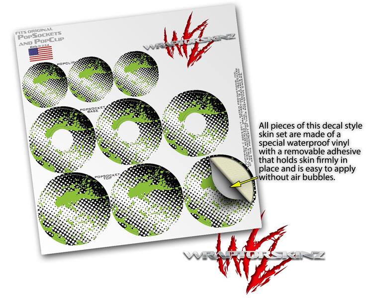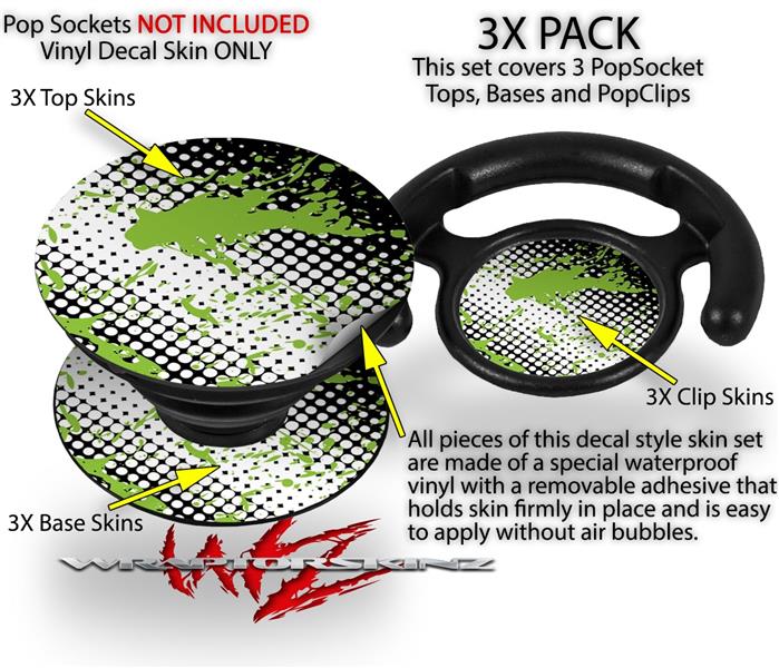 Decal Style Vinyl Skin Wrap 3 Pack for PopSockets Halftone Splatter Green White (POPSOCKET NOT INCLUDED)