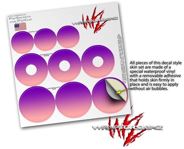Decal Style Vinyl Skin Wrap 3 Pack for PopSockets Smooth Fades Pink Purple (POPSOCKET NOT INCLUDED)