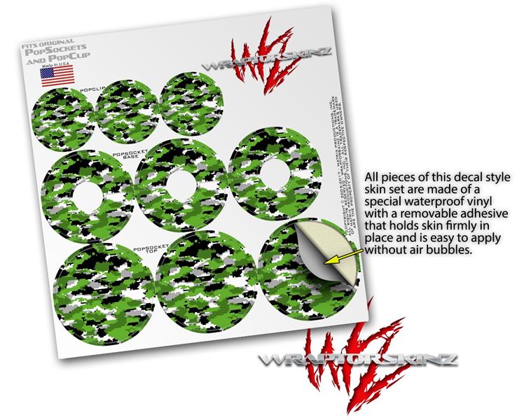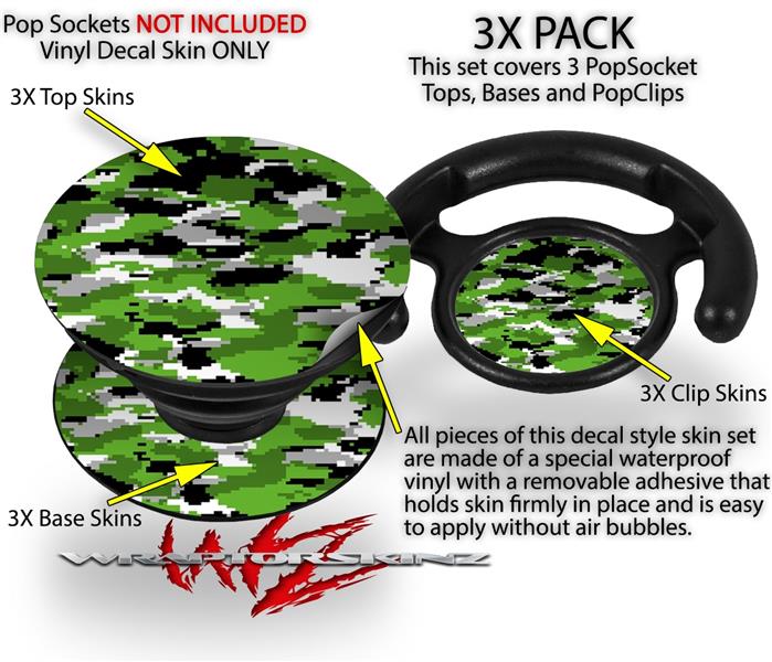 Decal Style Vinyl Skin Wrap 3 Pack for PopSockets WraptorCamo Digital Camo Green (POPSOCKET NOT INCLUDED)