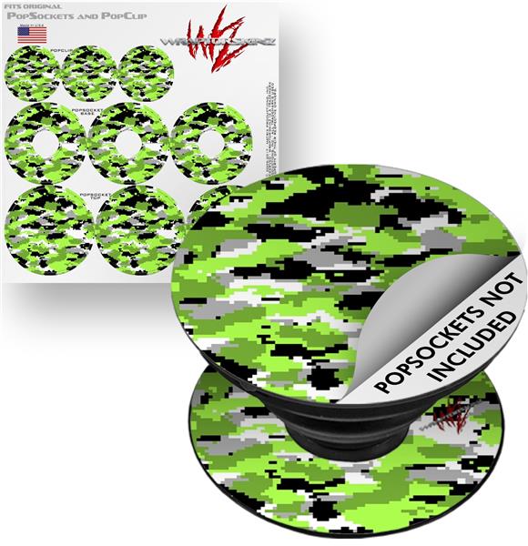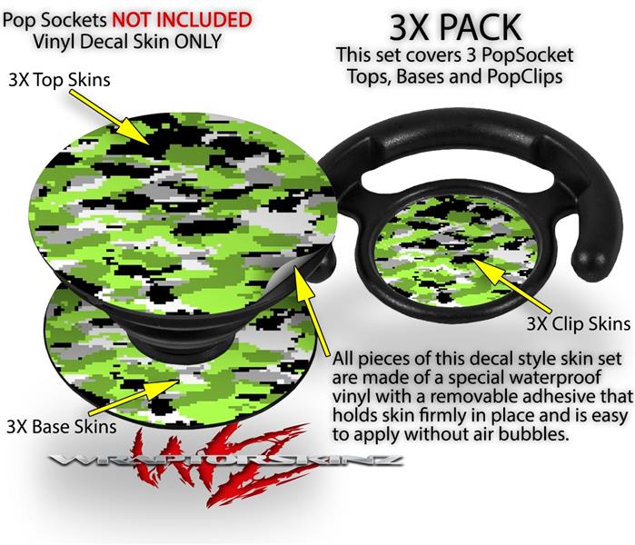 Decal Style Vinyl Skin Wrap 3 Pack for PopSockets WraptorCamo Digital Camo Neon Green (POPSOCKET NOT INCLUDED)
