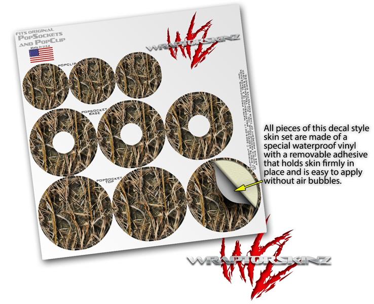 Decal Style Vinyl Skin Wrap 3 Pack for PopSockets WraptorCamo Grassy Marsh Camo (POPSOCKET NOT INCLUDED)