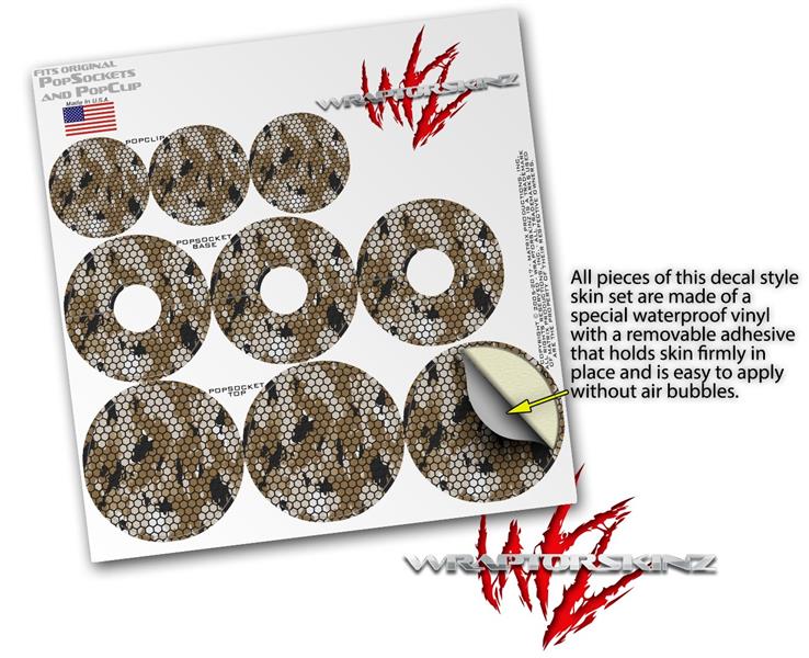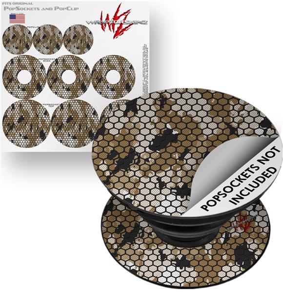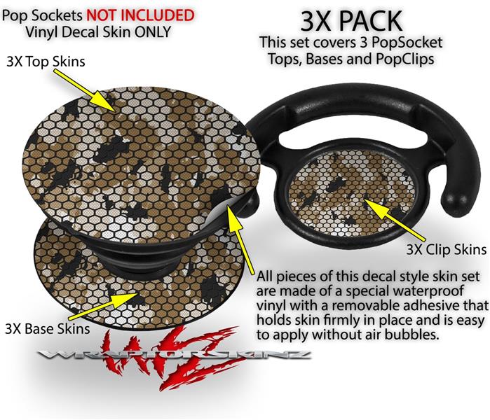 Decal Style Vinyl Skin Wrap 3 Pack for PopSockets HEX Mesh Camo 01 Tan (POPSOCKET NOT INCLUDED)