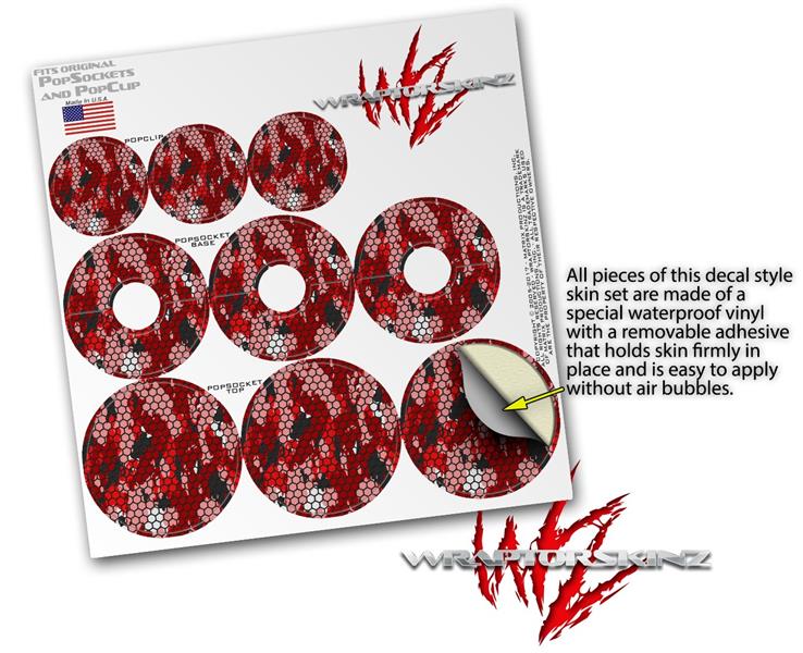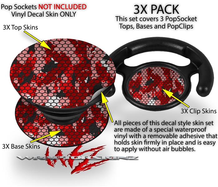 Decal Style Vinyl Skin Wrap 3 Pack for PopSockets HEX Mesh Camo 01 Red Bright (POPSOCKET NOT INCLUDED)