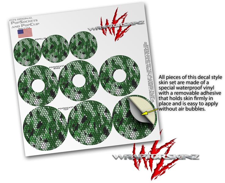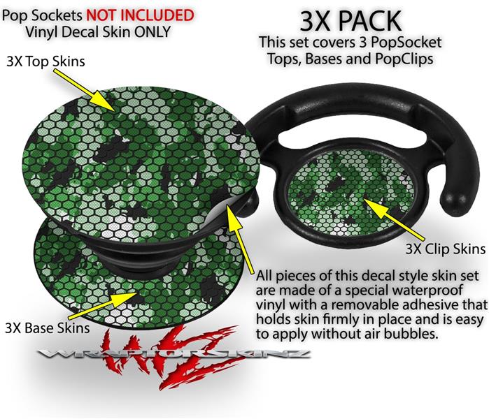 Decal Style Vinyl Skin Wrap 3 Pack for PopSockets HEX Mesh Camo 01 Green (POPSOCKET NOT INCLUDED)