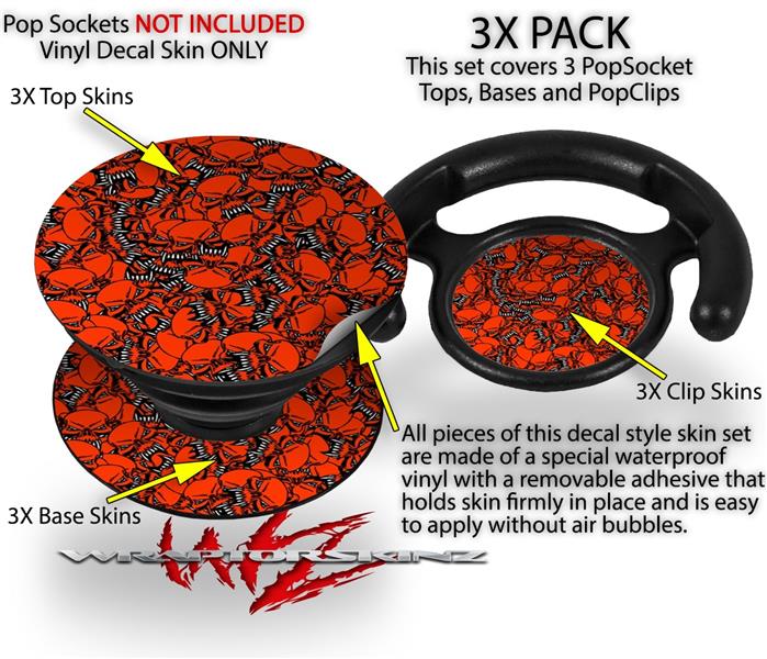 Decal Style Vinyl Skin Wrap 3 Pack for PopSockets Scattered Skulls Red (POPSOCKET NOT INCLUDED)