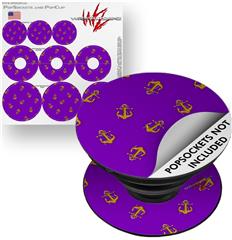Decal Style Vinyl Skin Wrap 3 Pack for PopSockets Anchors Away Purple (POPSOCKET NOT INCLUDED)