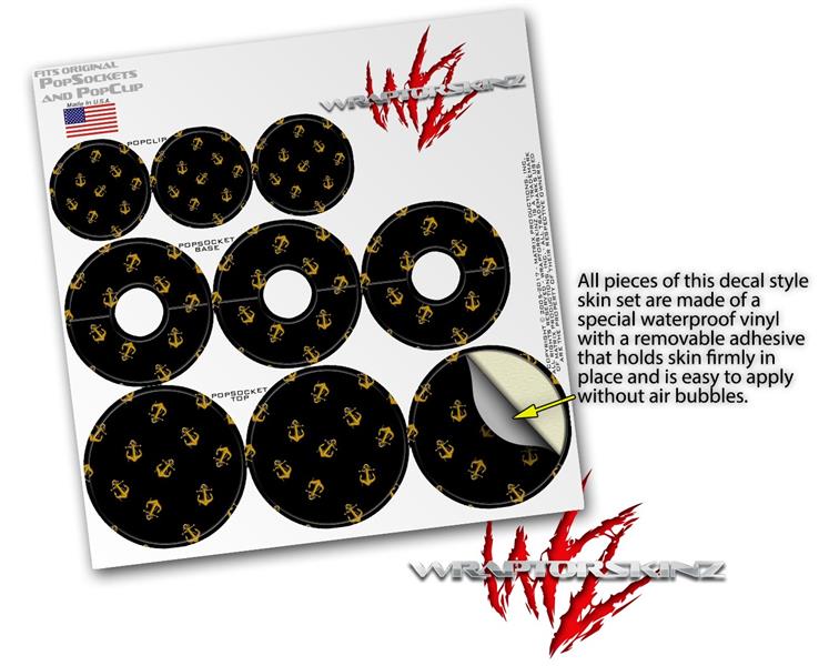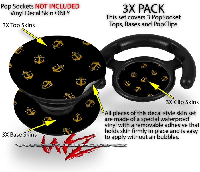 Decal Style Vinyl Skin Wrap 3 Pack for PopSockets Anchors Away Black (POPSOCKET NOT INCLUDED)