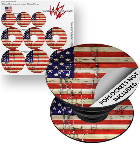 Decal Style Vinyl Skin Wrap 3 Pack for PopSockets Painted Faded and Cracked USA American Flag (POPSOCKET NOT INCLUDED)