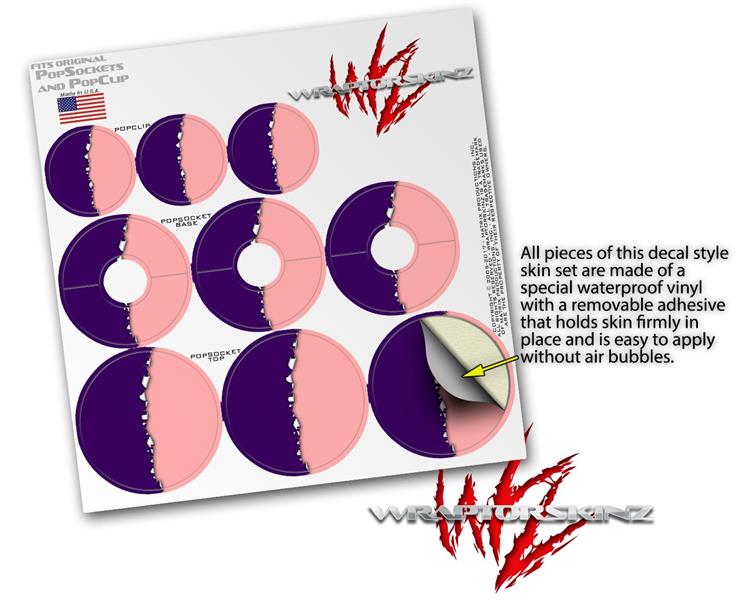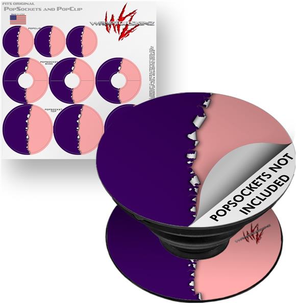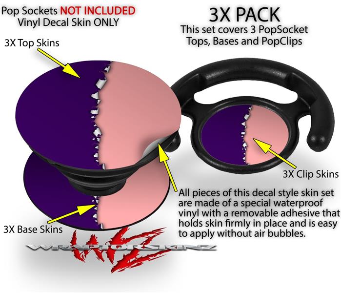 Decal Style Vinyl Skin Wrap 3 Pack for PopSockets Ripped Colors Purple Pink (POPSOCKET NOT INCLUDED)