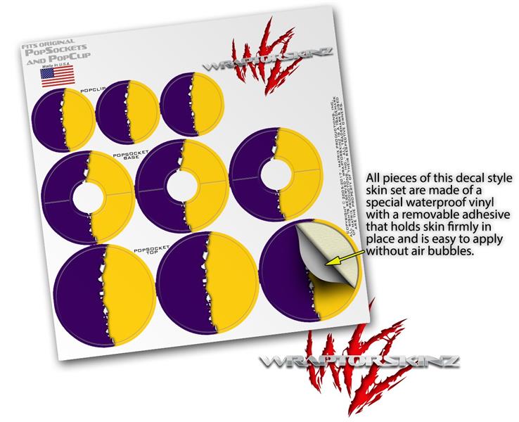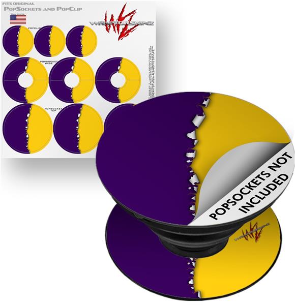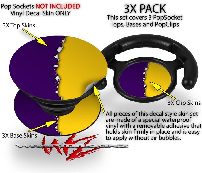 Decal Style Vinyl Skin Wrap 3 Pack for PopSockets Ripped Colors Purple Yellow (POPSOCKET NOT INCLUDED)