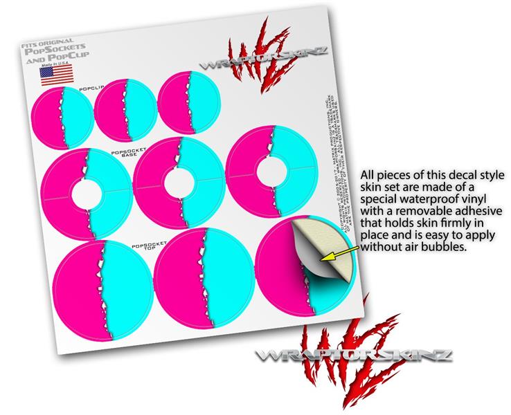 Decal Style Vinyl Skin Wrap 3 Pack for PopSockets Ripped Colors Hot Pink Neon Teal (POPSOCKET NOT INCLUDED)