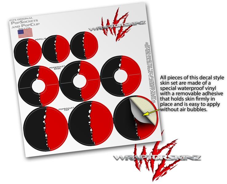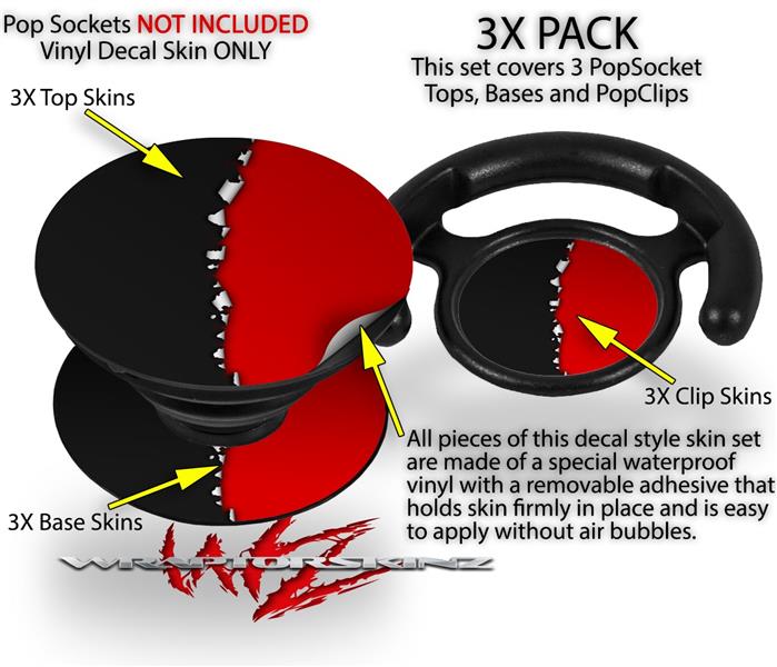 Decal Style Vinyl Skin Wrap 3 Pack for PopSockets Ripped Colors Black Red (POPSOCKET NOT INCLUDED)