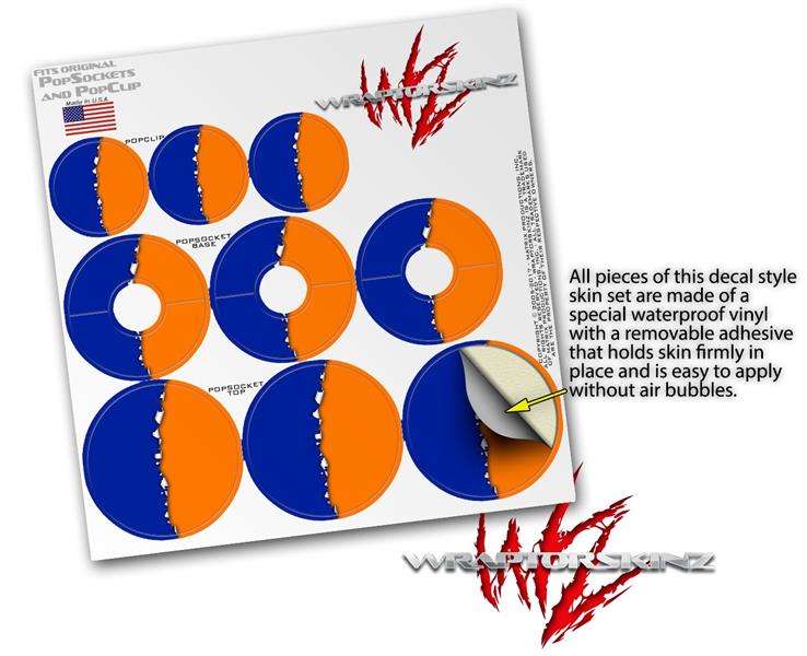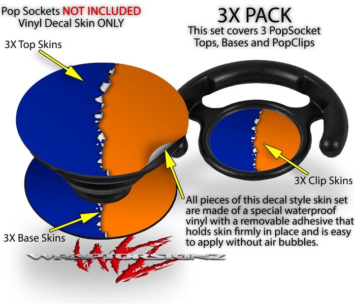 Decal Style Vinyl Skin Wrap 3 Pack for PopSockets Ripped Colors Blue Orange (POPSOCKET NOT INCLUDED)