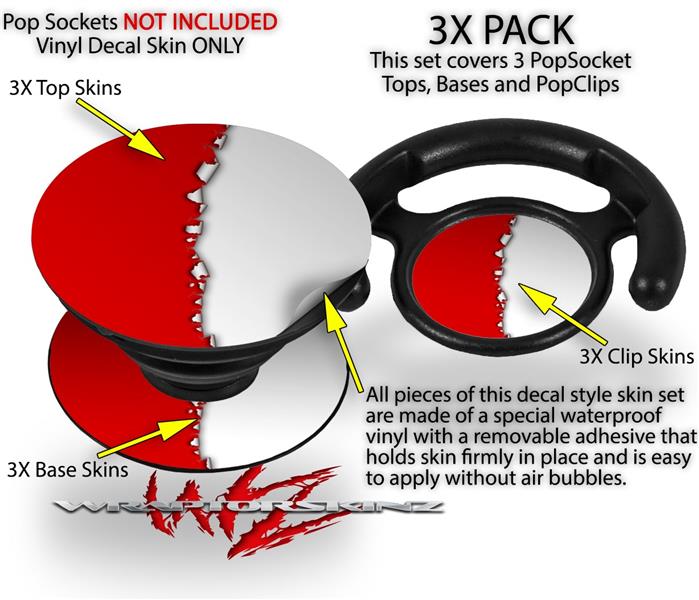 Decal Style Vinyl Skin Wrap 3 Pack for PopSockets Ripped Colors Red White (POPSOCKET NOT INCLUDED)