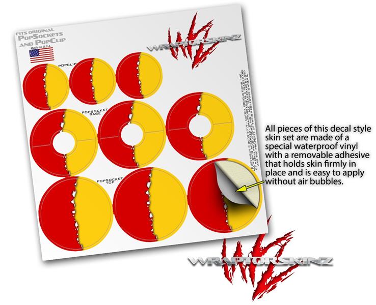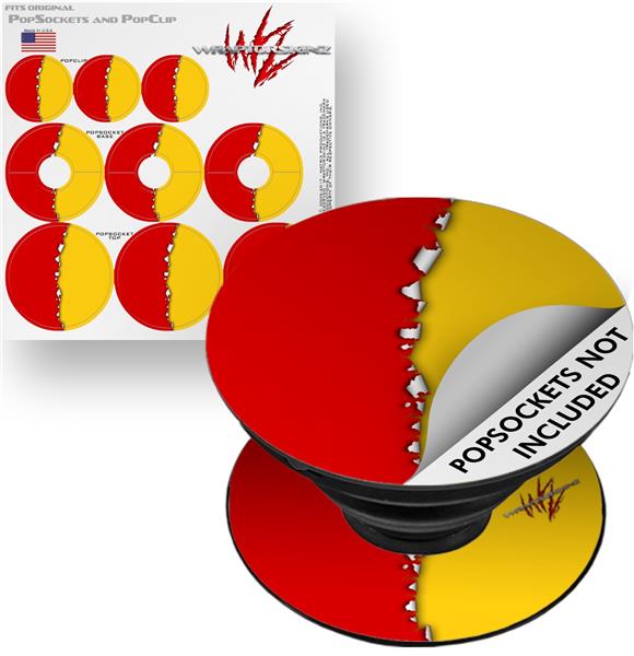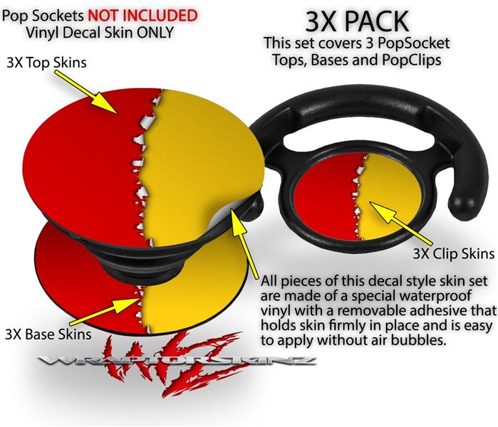Decal Style Vinyl Skin Wrap 3 Pack for PopSockets Ripped Colors Red Yellow (POPSOCKET NOT INCLUDED)