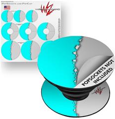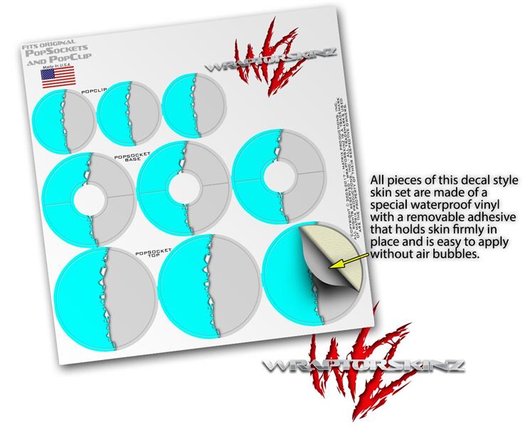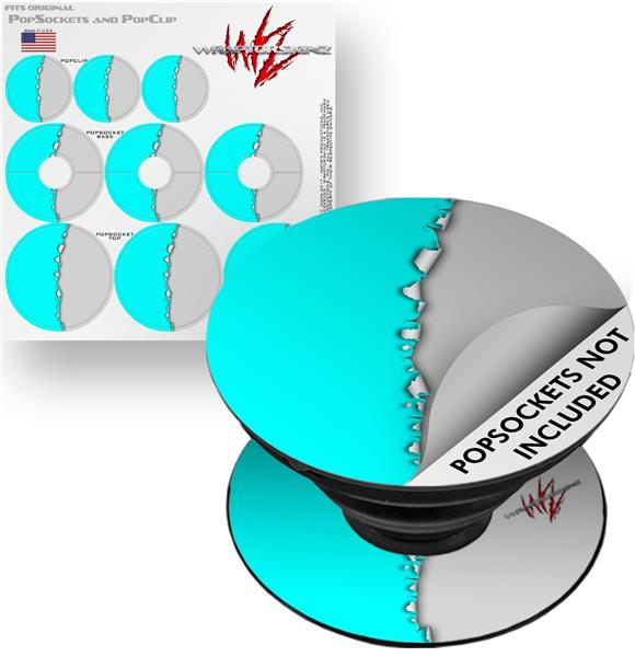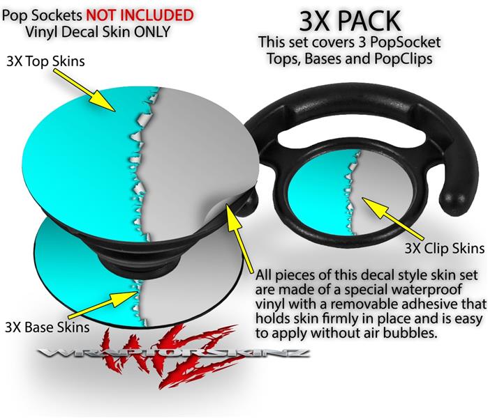 Decal Style Vinyl Skin Wrap 3 Pack for PopSockets Ripped Colors Neon Teal Gray (POPSOCKET NOT INCLUDED)