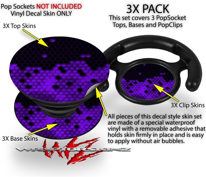 Decal Style Vinyl Skin Wrap 3 Pack for PopSockets HEX Purple (POPSOCKET NOT INCLUDED)