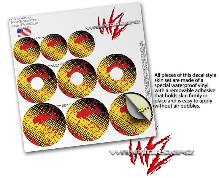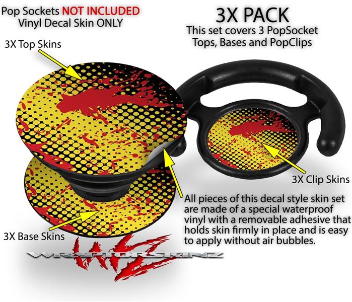 Decal Style Vinyl Skin Wrap 3 Pack for PopSockets Halftone Splatter Yellow Red (POPSOCKET NOT INCLUDED)