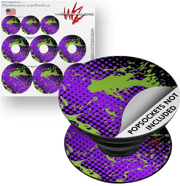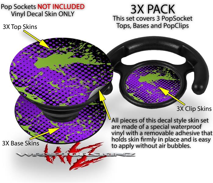 Decal Style Vinyl Skin Wrap 3 Pack for PopSockets Halftone Splatter Green Purple (POPSOCKET NOT INCLUDED)
