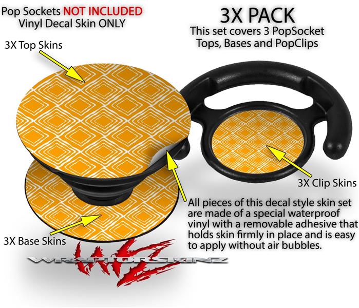 Decal Style Vinyl Skin Wrap 3 Pack for PopSockets Wavey Orange (POPSOCKET NOT INCLUDED)