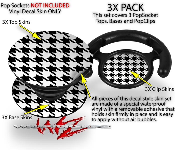 Decal Style Vinyl Skin Wrap 3 Pack for PopSockets Houndstooth Black (POPSOCKET NOT INCLUDED)