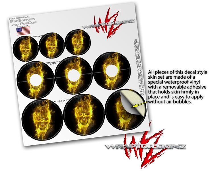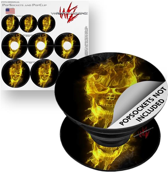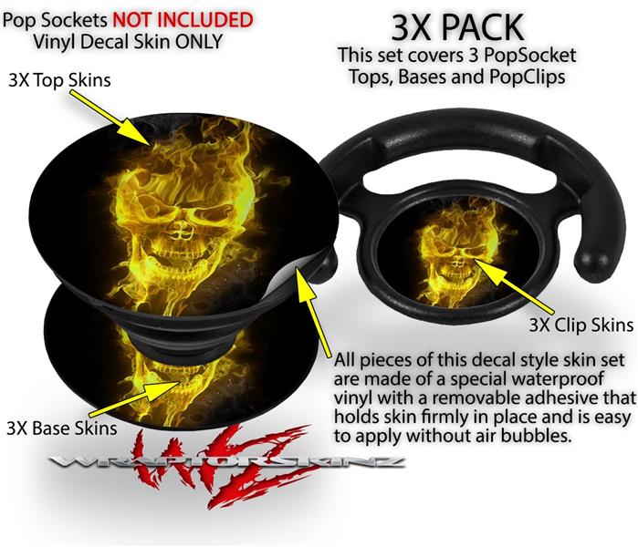 Decal Style Vinyl Skin Wrap 3 Pack for PopSockets Flaming Fire Skull Yellow (POPSOCKET NOT INCLUDED)
