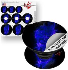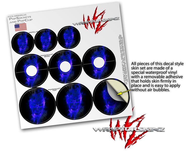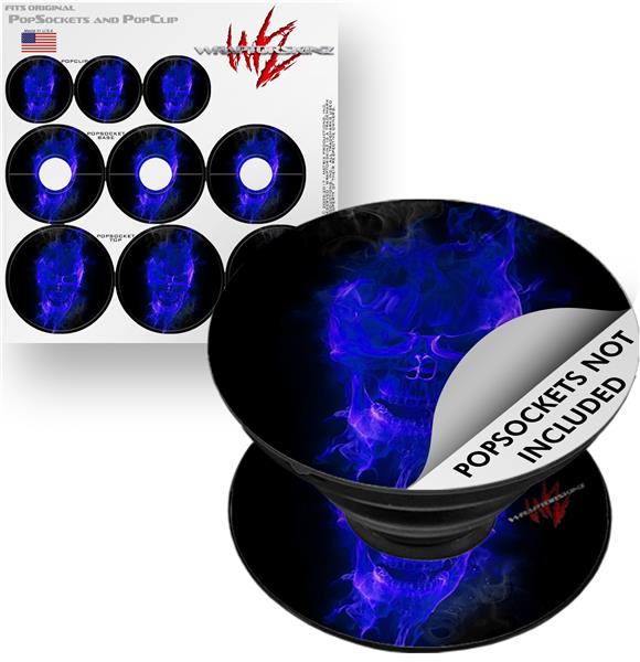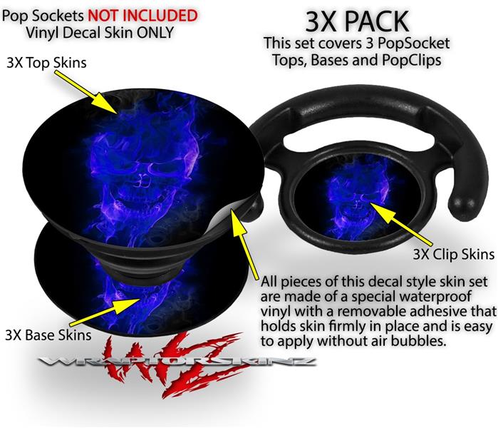Decal Style Vinyl Skin Wrap 3 Pack for PopSockets Flaming Fire Skull Blue (POPSOCKET NOT INCLUDED)