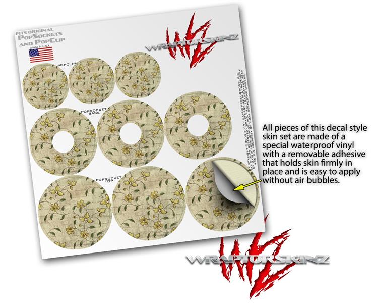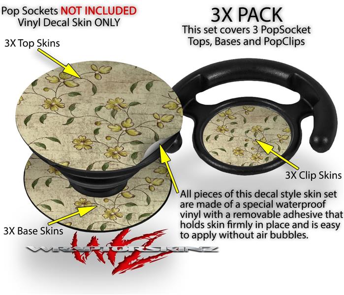 Decal Style Vinyl Skin Wrap 3 Pack for PopSockets Flowers and Berries Yellow (POPSOCKET NOT INCLUDED)